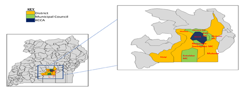 The geographical boundary of this area covers Kampala Capital City Authority, the Districts of Wakiso, Mukono and Mpigi together with their respective Municipalities of Entebbe, Kira, Makindye-Ssabagabo, Nansana and Mukono.